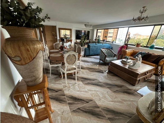 El apartamento cuenta con 3 alcobas, la principal con baño privado, 2 baños adicionales, cocina abierta, sala-comedor, alcoba de servicio, zona de ropas y garaje. Se encuentra en edificio con portería 24 horas y ascensor.